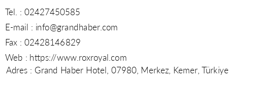 Grand Haber Hotel Kemer Iletişim