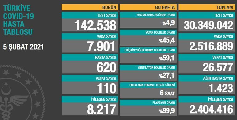 Sağlık bakanlığı son 24 saatte 110 kişinin korona virüsten hayatını kaybettiğini 7 bin 901 yeni vaka sayısının olduğu açıkladı. Türkiye de 5 şubat günü koronavirüs nedeniyle 110 kişi vefat etti 7 bin 901 yeni vaka tespit edildi. En son sağlık bakanlığı haberleri anında burada. Sağlık bakanlığı haberleri son dakika sağlık bakanlığı haber ve gelişmeleri burada.